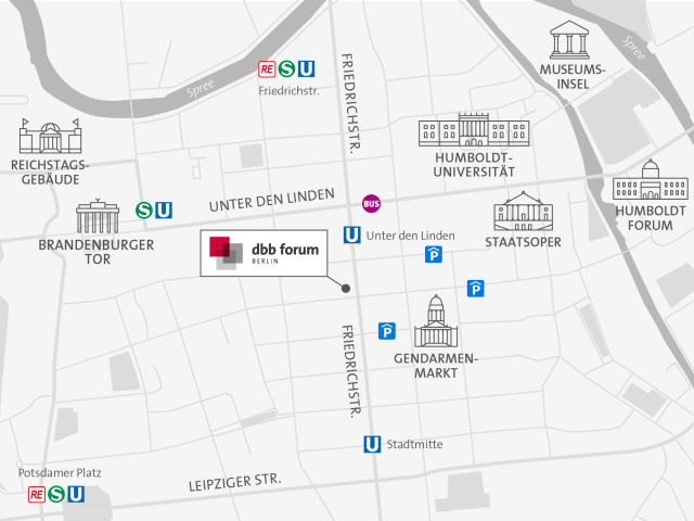 Für Ihre Veranstaltung im dbb forum berlin bietet die Deutsche Bahn spezielle Event-Angebote, die eine komfortable und umweltfreundliche An- und Abreise ermöglichen. Ihre Teilnehmenden profitieren von attraktiven Konditionen und reisen mit 100 % Ökostrom im Fernverkehr.